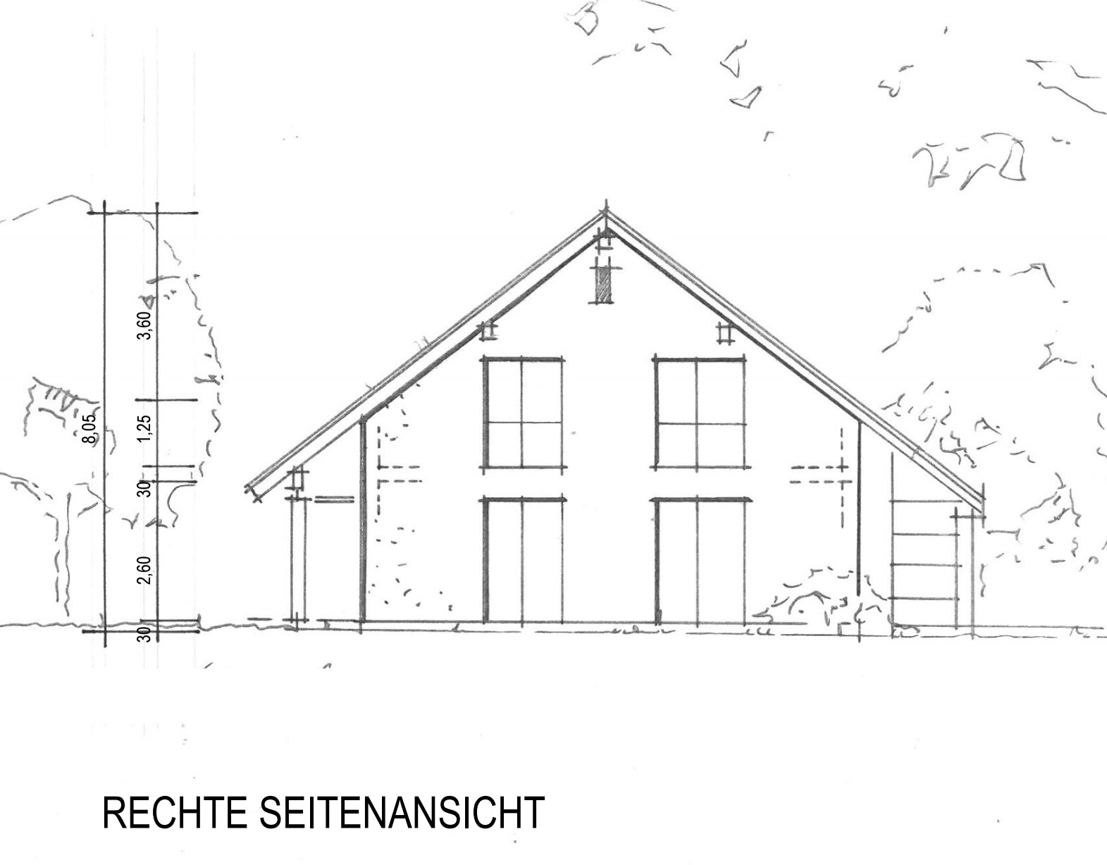 Man sieht die Hand des Architekten. Es ist schon fast eine kleine Augenweide hier, einen mit Liebe gezeichneten Entwurf zu sehen.
