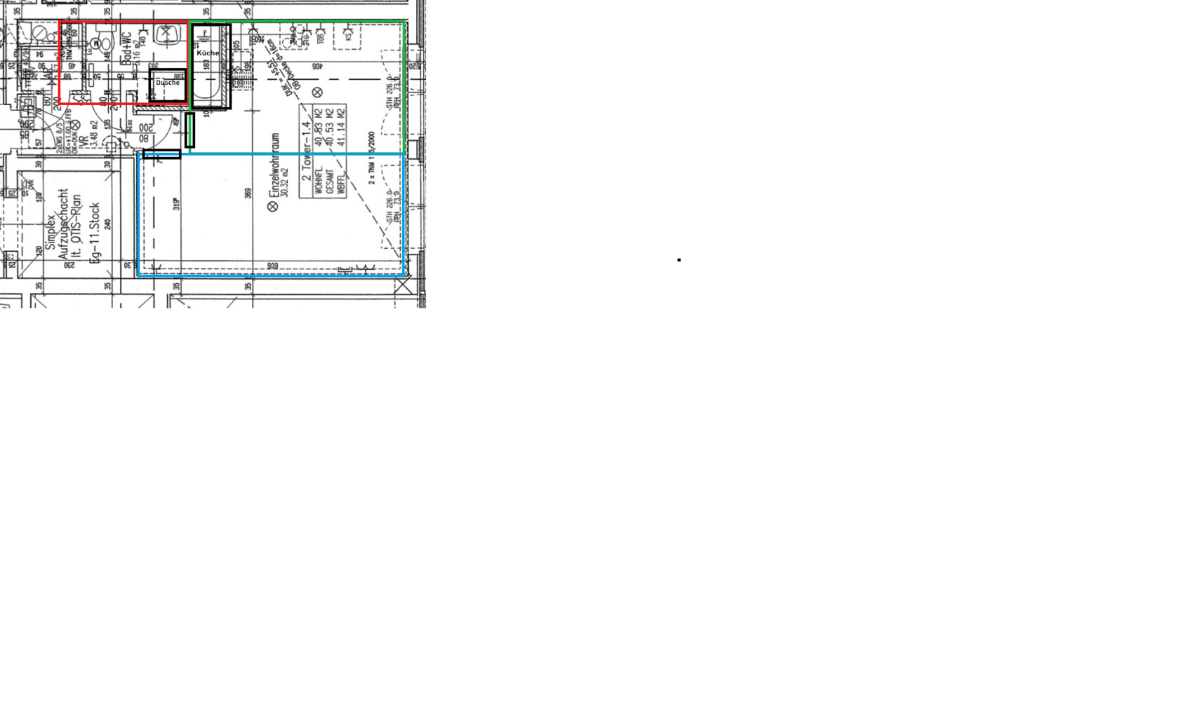 Um das Thema mit Eigentümergemeinschaft/Technische Machbarkeit/etc. zu umgehen, hätte ich gedacht, das Badezimmer einfach zu verkleinern, um den Bereich mit Küche zu vergrößern und als Wohnküche zu planen