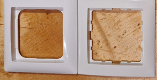 Man könnte am Busch und Jäger Rahmen diese Ausnehmungen nachfräsen, damit rutscht die Schalterabdeckung aber weiter in den Rahmen der ja dicker ist als der Originalrahmen. Beim Tasten steht dann der Rahmen vor.