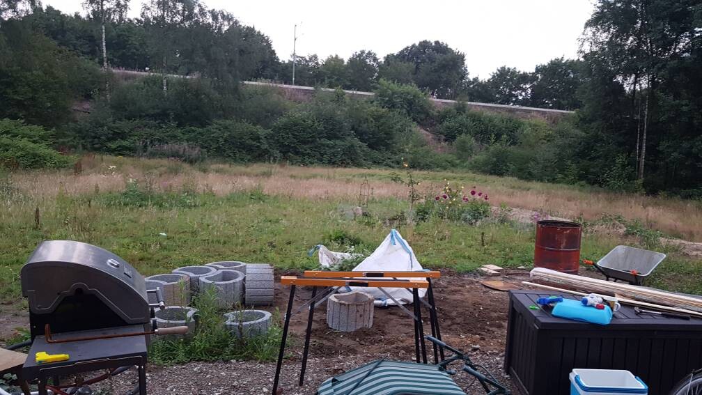 Och ich bin da geduldig. Jeden Abend 10 Schubkarren. Notfalls kommt Ende September eh ein Bagger für unsere L-Steine. Der darf dann den Rest wegschieben.