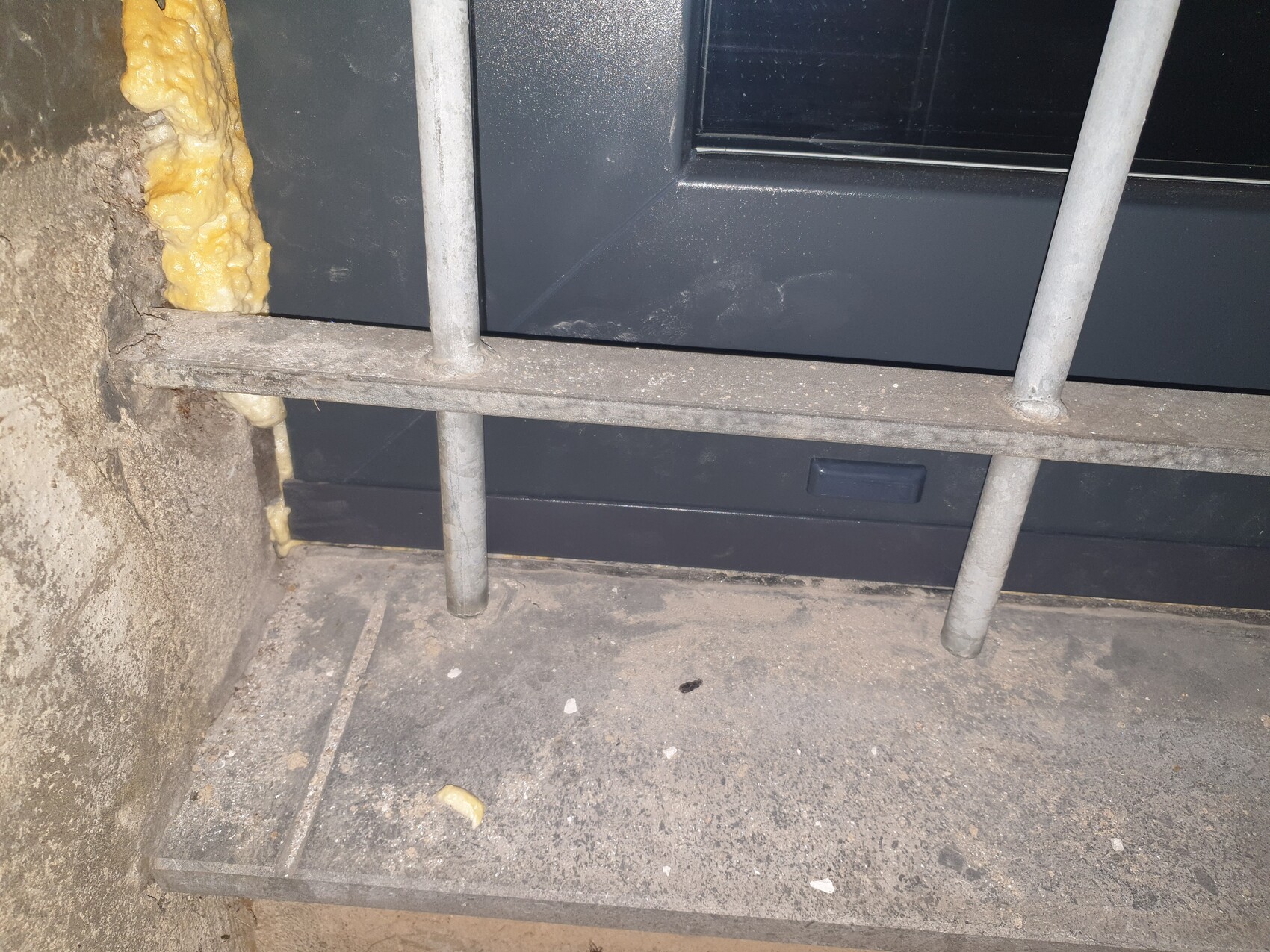 Man sieht förmlich wie glatt die Stelle geschrubt wurde und man sieht das sich der bauschaum rein gefressen hat, der ist schon 4 wochen auf dem fenster.
