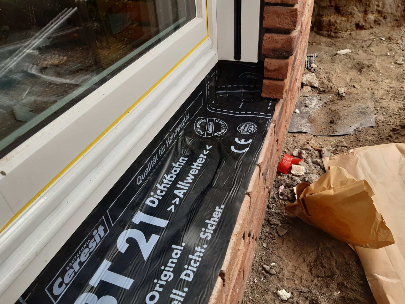 Hi, was mich interessiert, wie sieht es hinter dem Styrodur aus? Ich kenne es so, dass dort die Schnittstelle von der Bodenplatte zum Fenster geschlossen werden muss und an den Beiden zum Mauerwerk, z.B. mit Flüssigkunststoff (Anschliff, Grundierung, erste Lage FSK, Vlies einsetzen, zweite Lage FSK), lass dort einen Fachmann lieber dran.