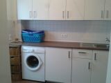 Dann stand die Küchenzeile erst mal einige Wochen unfertig im Hauswirtschaftsraum und hat auf die Arbeitsplatte gewartet.