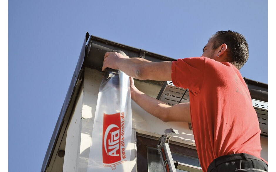 Nee, KG Rohr ist ja nicht flexibelDann heisst das Wellrohr (ungelocht) DN 100 und gibt es im BaumarktStatt der Folie wollte ich genau da wo die Folie sitzt so einen gelben flexiblen Schlauch anbringen, den ich dann weit weg führen kann. Jetzt sitzt bei mir das Fallrohr und ich habe so eine Folie eben unten dran, aber das Gefälle fehlt um das abzuleiten... aktuell ist da immer ein See...