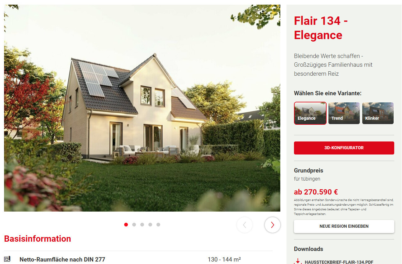 - Haus + Keller + Einzelgarage = max. 430000 inkl. Eigenleistungen im Innenausbau (Böden, Malern etc.)Dann nimm doch einen "Billiganbieter" als Referenz:Das ist das Haus ohne "bauseits", ohne Keller, ohne Baunebenkosten, ohne Keller, ohne Garage.