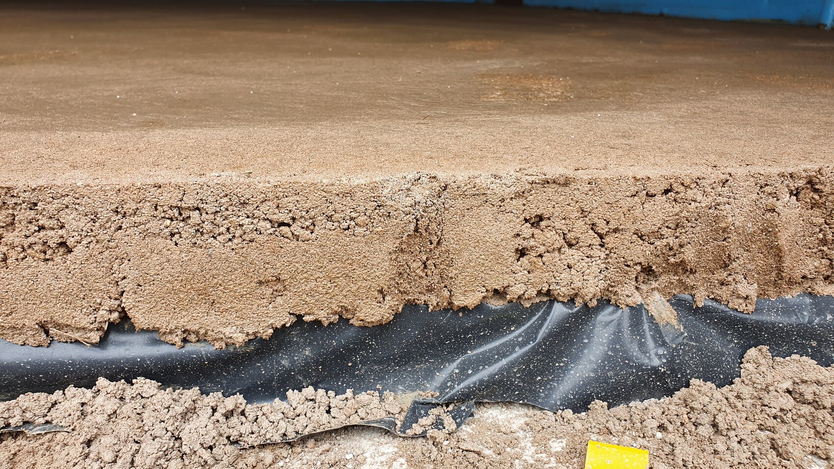 Wie ich das auf den Fotos erkenne wurde ein Zementestrich auf Trennschicht oberhalb einer Bodenplatte eingebaut.