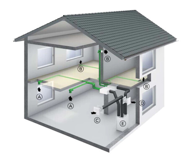 Hi, ist eine Viessmann Vitovent 300-W, dort ist folgendes vermerkt:Bei uns läuft auch ein Viessmann-Gerät. Der Hersteller dokumentiert in einer Skizze ja sehr schön, wie weit Außenluft und Fortluft auseinander liegen sollen:Unser Planer hat das sehr ernst genommen. Die Fortluft liegt bei uns in einem Lichtschacht im Technikraum im Keller, Nordseite des Gebäudes. Außenluft beziehen wir über einen Einlass im Obergeschoss von der Gebäudeostseite.
