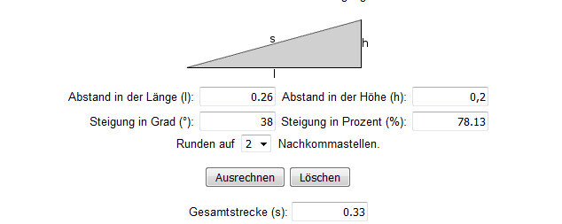 Da kommt man auf einen Rechner, bei dem mal Höhe und Grad eingeben kann und dann die Länge raus bekommt.