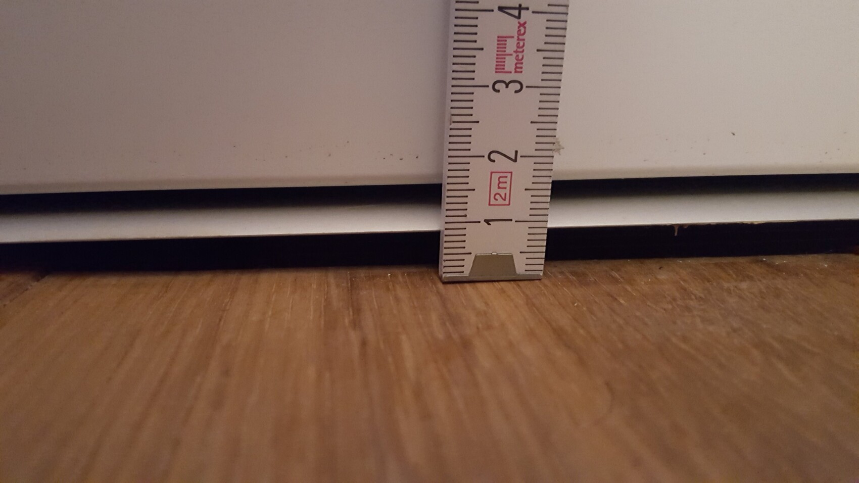 Maßband misst Bodenabstand an der Bodenleiste im Innenraum.
