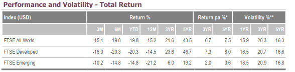 Der außerordentlich populäre A1JX52 ist im laufenden Jahr bei -7,87%. Das ist also schon eine gewisse Überreibung deinerseits.Achtung: Fonds != Indizes. Als Europäer profitieren wir aktuell optisch davon, dass der Euro gegenüber dem Dollar eingebrochen ist. Das bremst den Fall ziemlich. Der Index selbst kommt ziemlich genau auf 20% Miese dieses Jahr hin. Industrieländer (MSCI World bzw. FTSE Developed) sind ein bisschen schlechter, die Schwellenländer auch eindeutig in der Miese aber weniger schlimmaskforafriend schrieb: