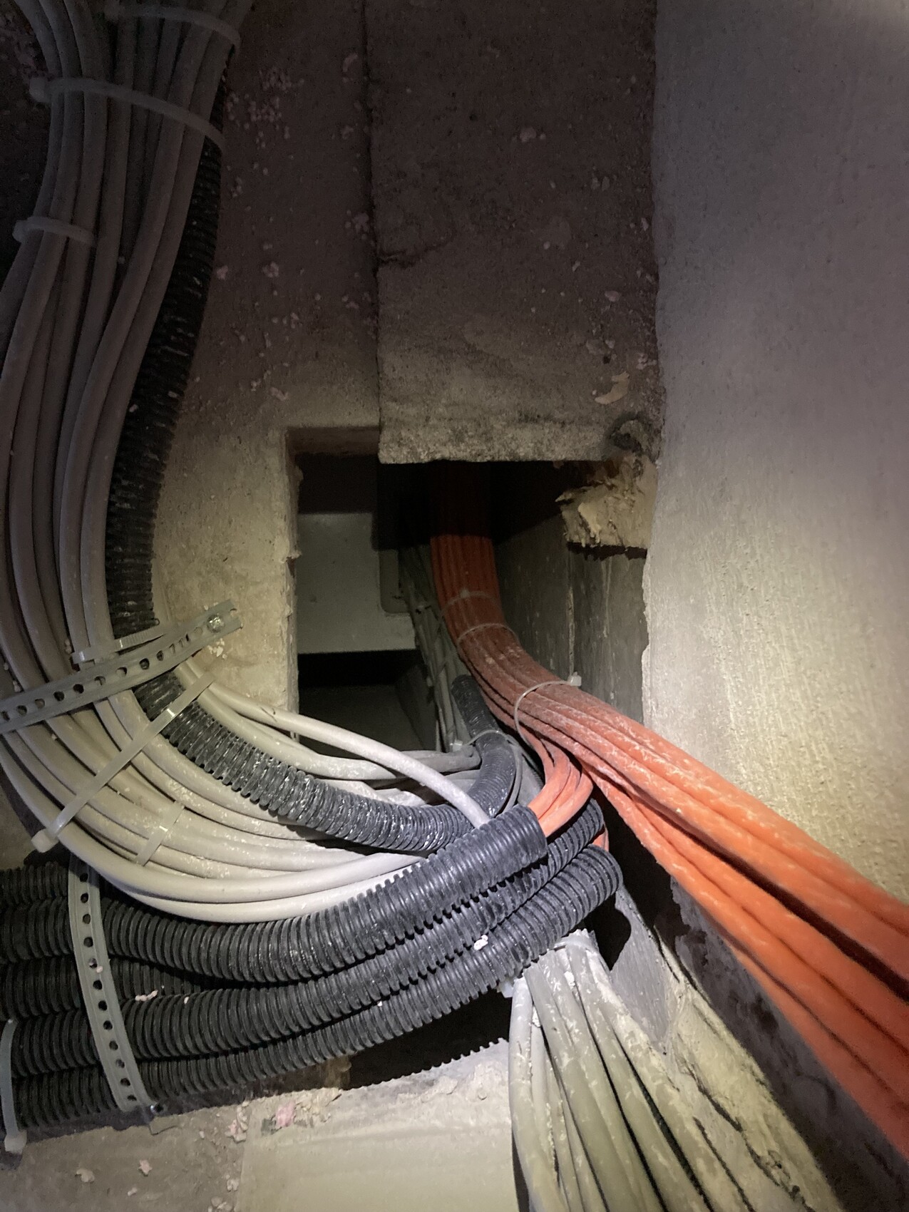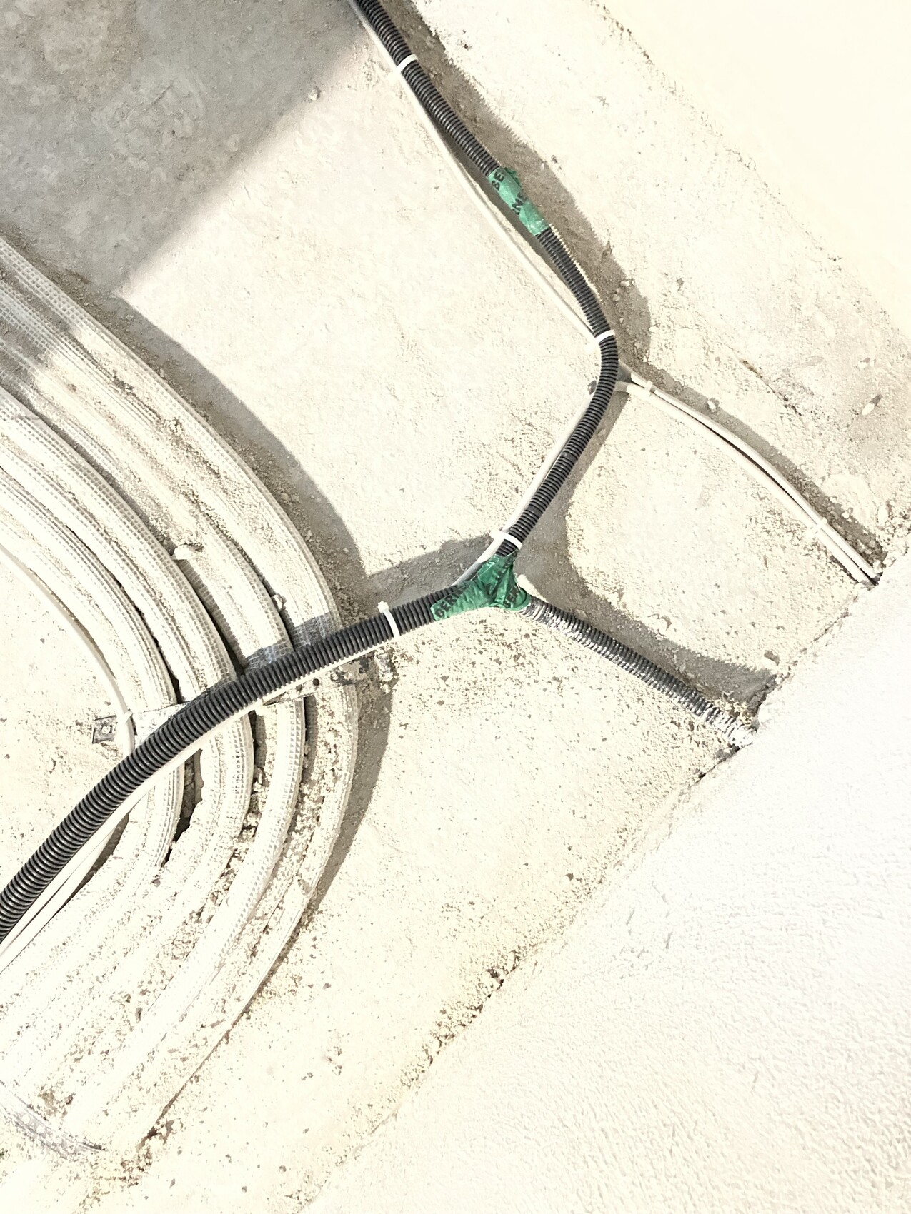 unser Elektriker hat die dünneren Rohre von Dosen mit nur einem Cat7-Kabel an einigen Stellen auf einer Etage mit Klebeband zusammengeführt und dann in einem dickeren Rohr weitergeführt. Außerdem enden die Rohre nicht im Keller, sondern in einem Kabelschacht, der noch mit Gipskarton verkleidet wird. Unser Bauleiter findet das alles in Ordnung, aber ich frage mich, wie man da später ordentlich Kabel wechseln können soll, wenn man vom Keller aus nicht an die Rohre kommt und die Rohre mehrfach belegt sind, so dass auch das Nachschieben von Dosenseite immer gegen die anderen Kabel im Rohr arbeitet.