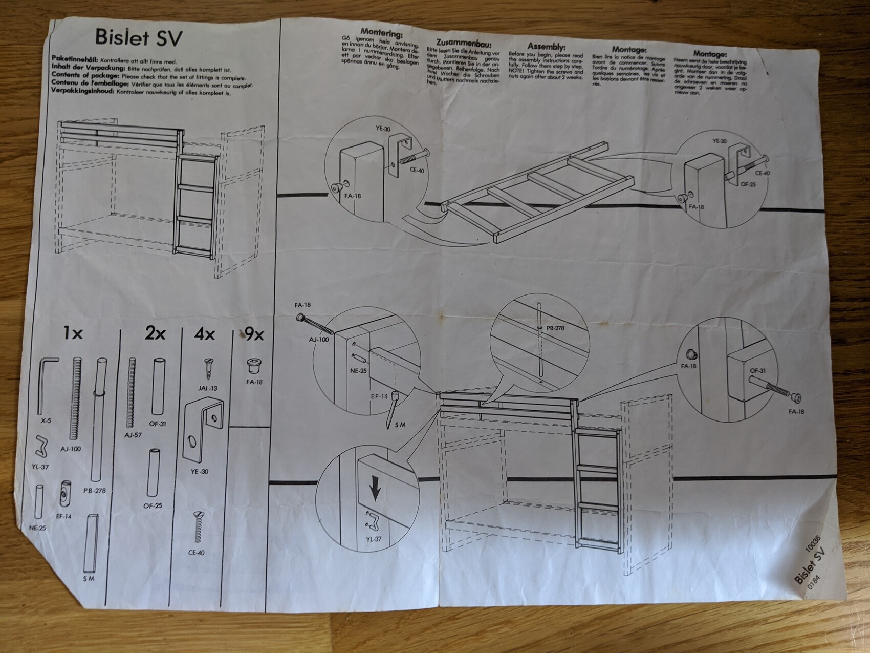 Wir haben gerade ein älteres IKEA-Stockbett "Bislet" wieder reaktiviert bzw. reaktivieren wollen. Dabei sind wir auf einige kleinere Schwierigkeiten gestoßen:
