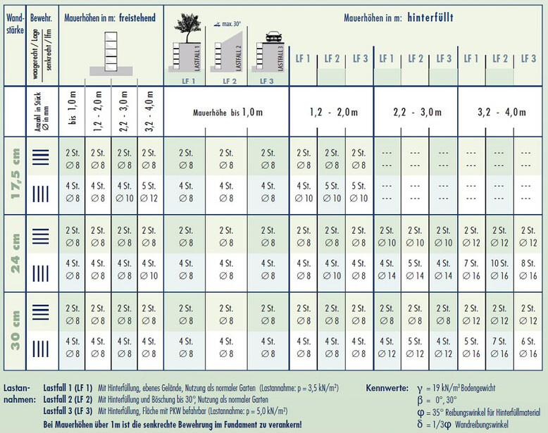 Für Schalsteine gibt's eine Musterstatik! Einfach googeln. Bis 2m kommt man sogar noch mit 17,5er hin.