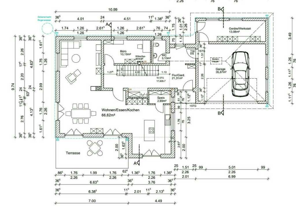 Aber das Gelände wird hoffentlich anders als gezeichnet angepaßt, sonst bräuchte man auf den ersten beiden Metern der Einfahrt einen Geländewagen