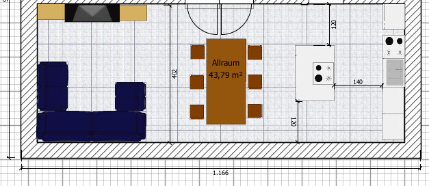 Wohnen/Essen/Küche sind echt groß. Ich mag das eigentlich (bei uns werden es auch rund 68 qm, aber das WZ ist bei uns etwas abgetrennt/bzw. versetzt) aber ihr müsst schauen wie das geschickt aufgeteilt/ zoniert wird, damit es nicht einfach wie eine große Halle wirkt.