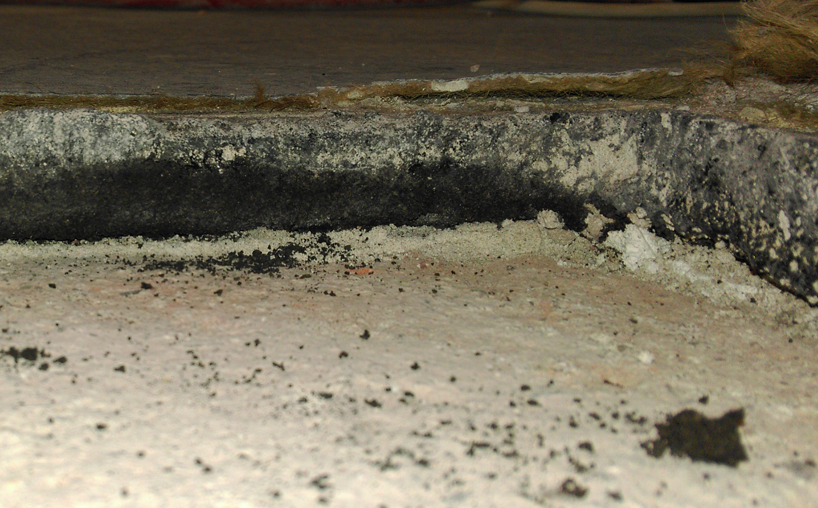 - 10mm schwarze Schicht, die sich etwas nachgibt - irgendwie etwas weicher. Es bröselt schon bei leichter Berührung (siehe erstes Foto)