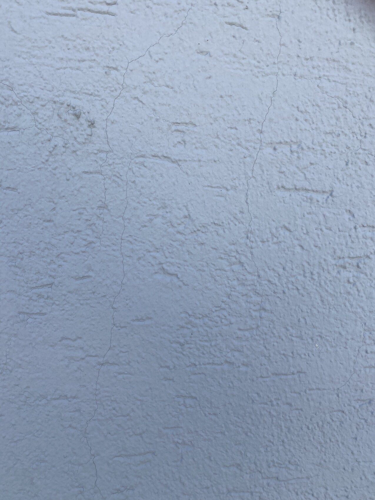 Hellblaue, grob strukturierte Wand mit sichtbaren Rissen und rauer Oberfläche.