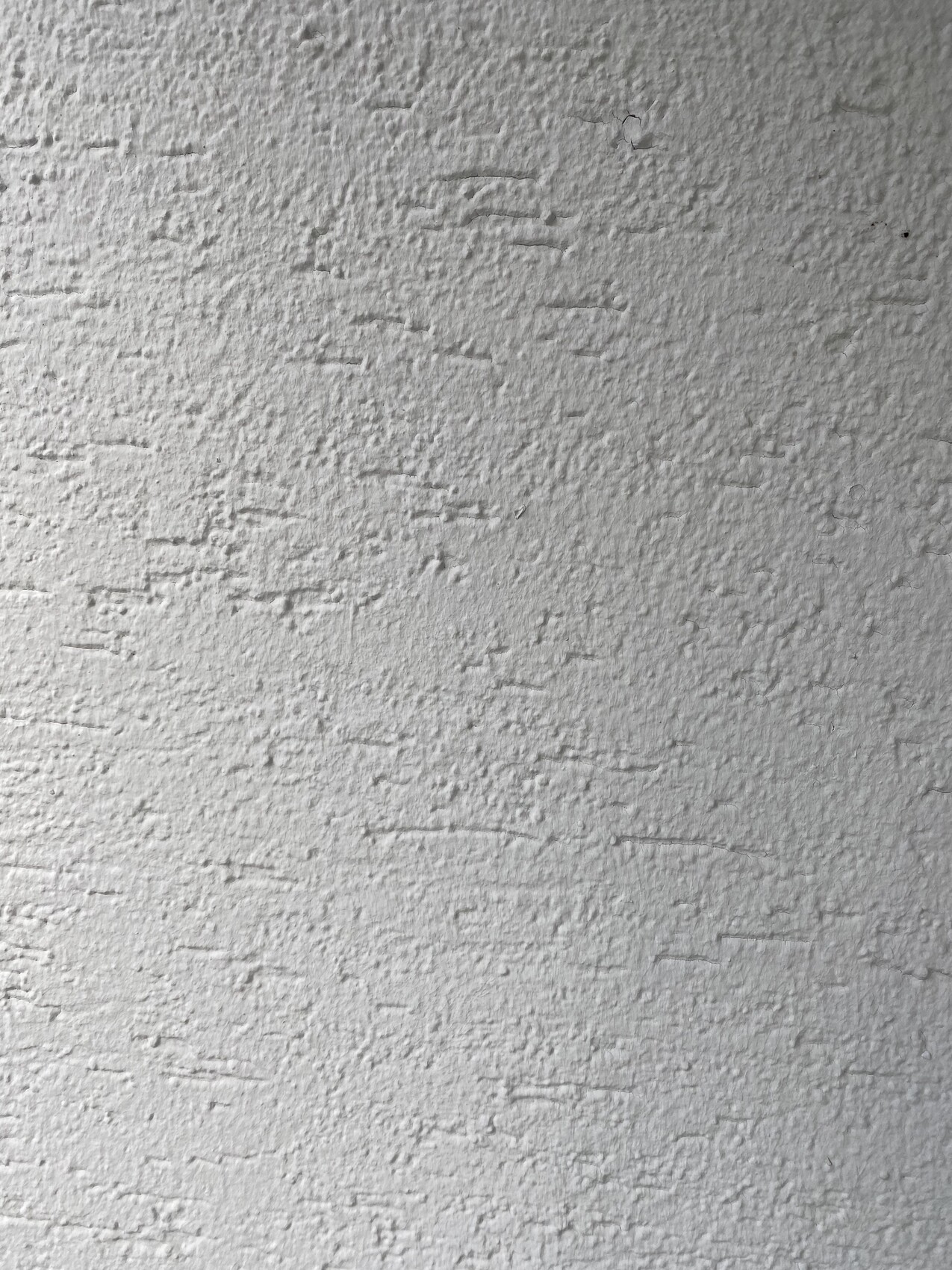 Grobe, weiße Wandoberfläche mit unregelmäßigem Putzrelief.