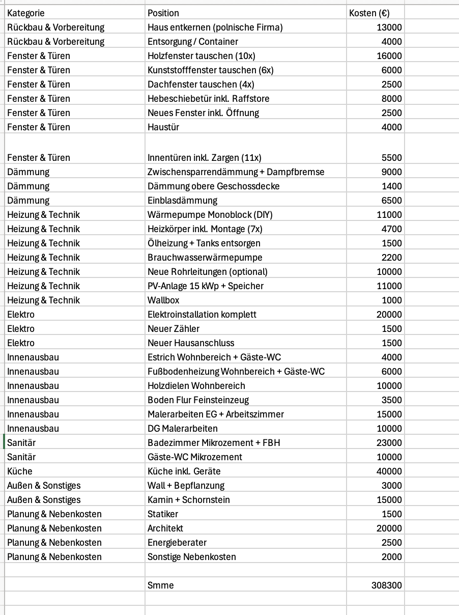 Ich habe eine grobe Sanierungskosten-Übersicht erstellt (ebenfalls angehängt).
