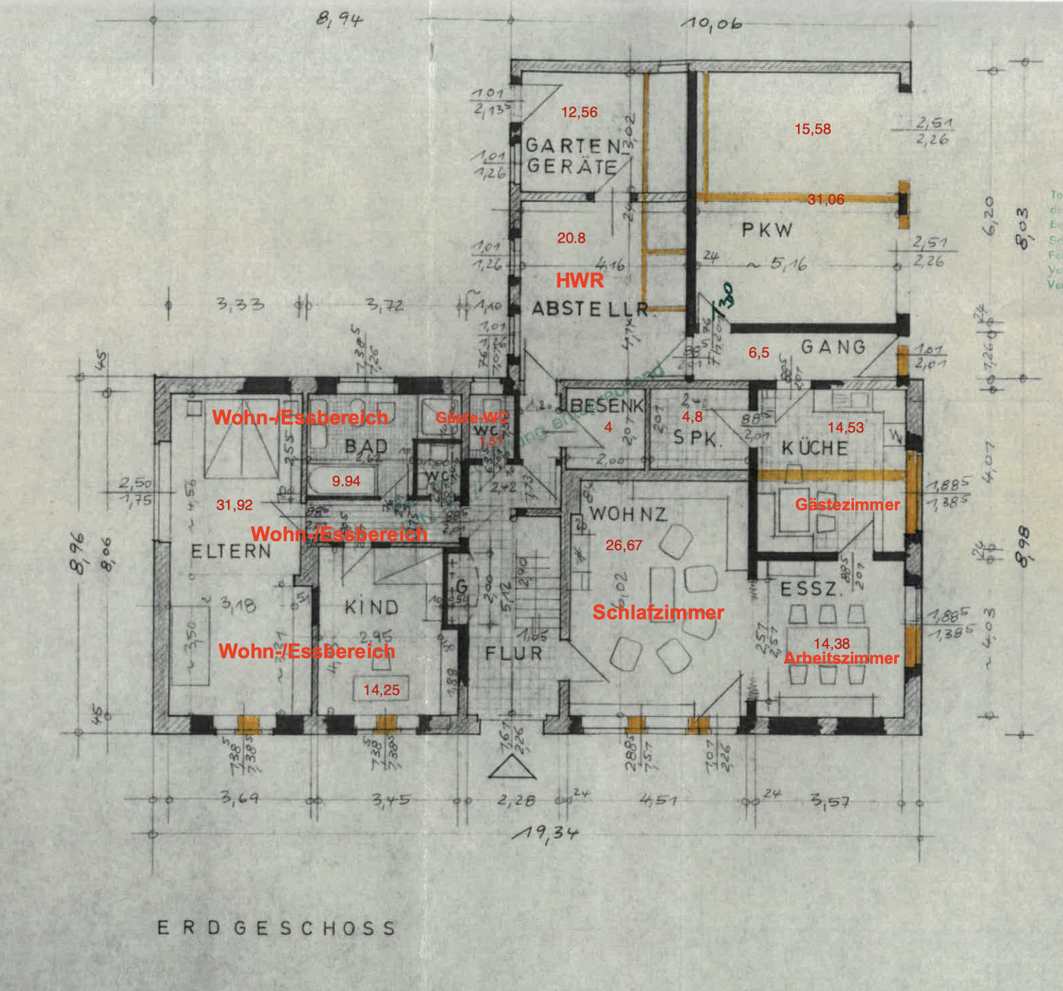 Aktuell liegen Wohn-/Essbereich zur Straße (kleine Straße, aber laut Nachbarn trotzdem viel befahren). Geplant ist daher eine Neuorganisation des EG: