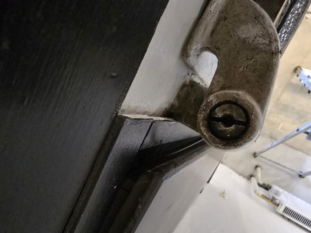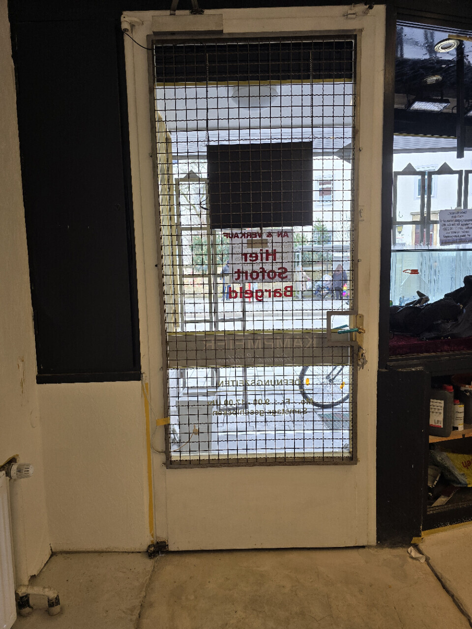 Ich vermute, dass die sich nicht einfach hochdrücken lässt, sonst könnte ja jeder in den Laden (?), der ein Stemmeisen hat. Also erstmal die Scharniere lösen. Schlitzschraubendreher wäre mein erstes Werkzeug zum Ausprobieren.