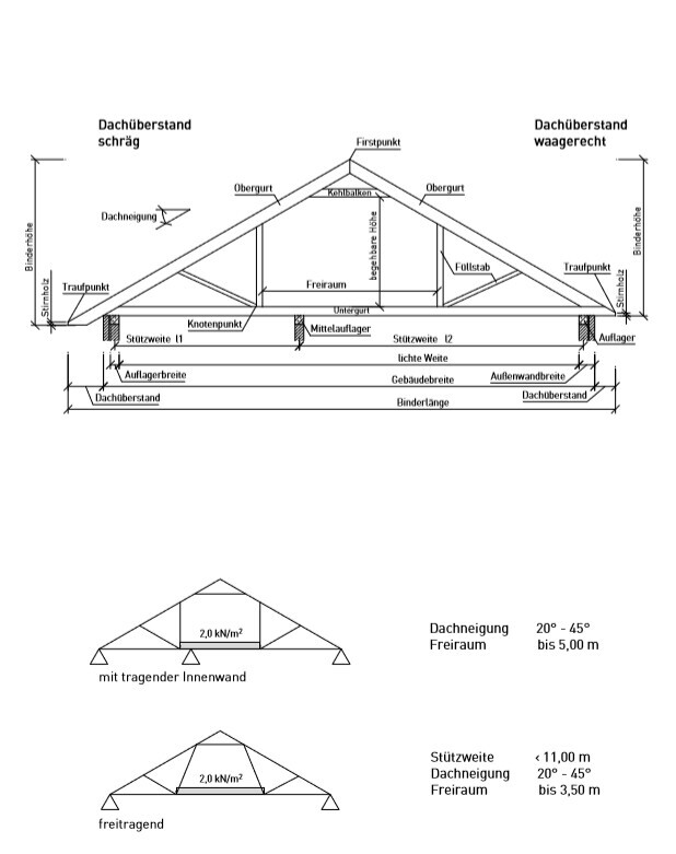 Das ist eine Art Studiobinder. Dachneigung bei 9,5m Breite 24 Grad zu wenig. Geh auf 30, dann haste runde 60qm Stehfläche oben.