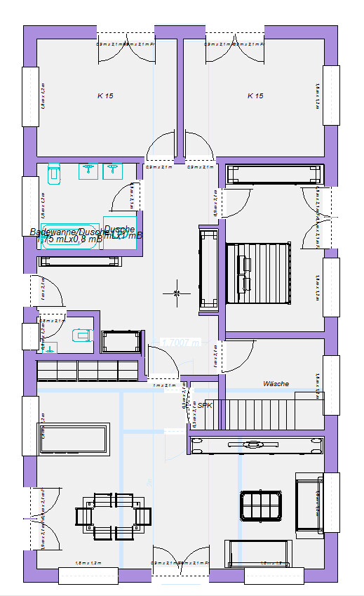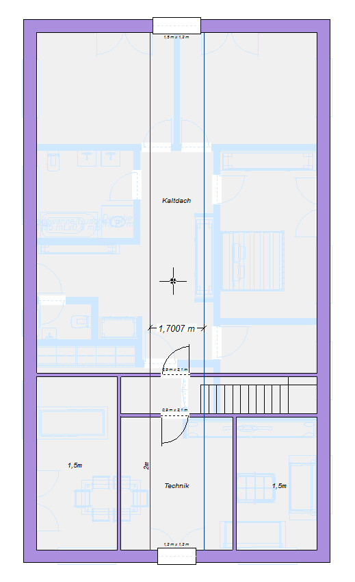Hier mal das 30° Dach mit 2m-Linie (circa) und Kniestock 0: