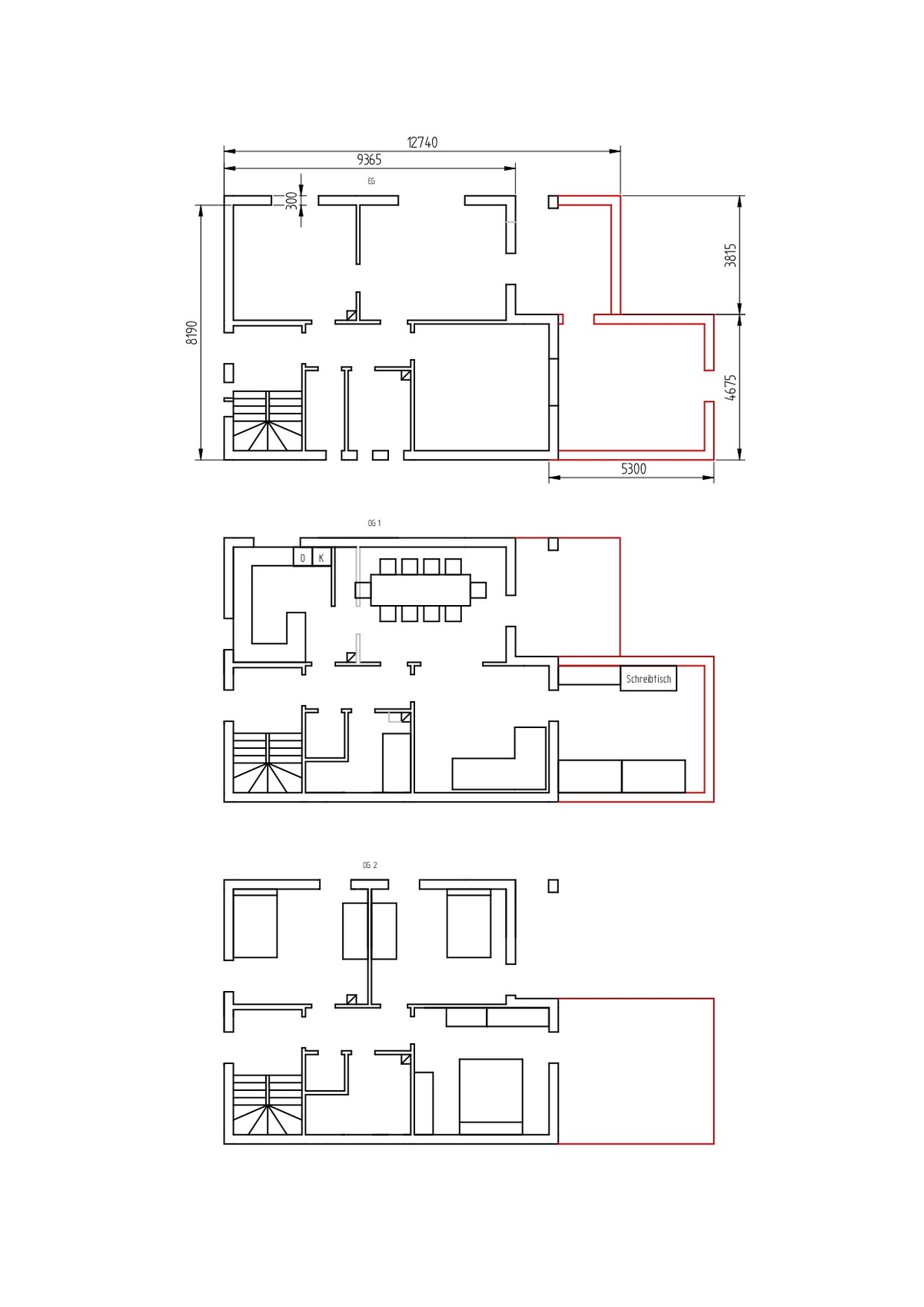 1. Anbau über EG und 1.OG um in beiden Etagen ein weiteres Zimmer zu haben (ohne Keller) Im 2. OG soll es Balkon werden