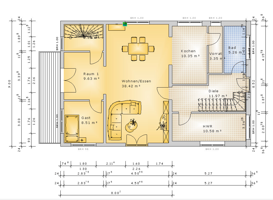 El_Burrito05.05.17 19:02Beim zweiten Entwurf (OG) würden die Schlafräume im DG Platz finden. Erschlossen werden diese Räume durch die Treppe in der Diele. Hier hätte man keinen schlauchförmigen Flur. Allerdings gibt es in diesem Konzept einen Raum zwischen Wohn/Essbereich und Balkon, den ich noch nicht so recht zu nutzen weiß.