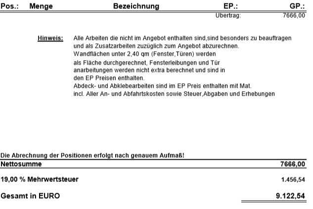 - nicht alle abgesprochenen Positionen stehen im Angebot ( grundierung oö )