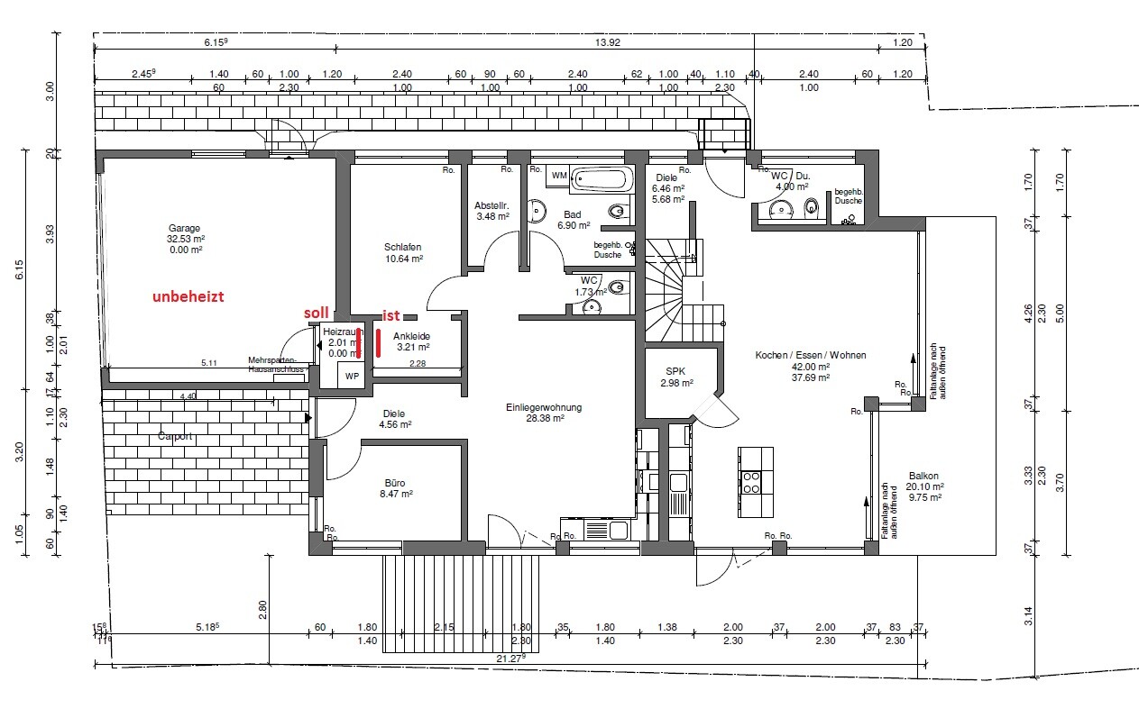 im Anhang ist der Grundriss mit dem soll- und dem ist-Zustand.