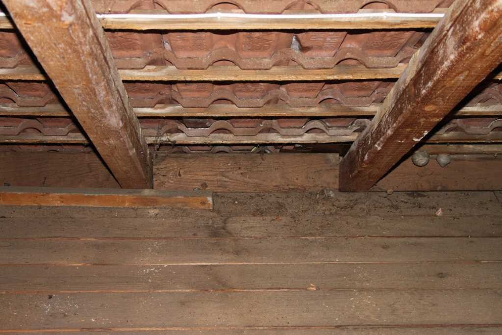 Der Dachboden ist ungenutzt und das Dach ungedämmt, man schau auf die Ziegel.