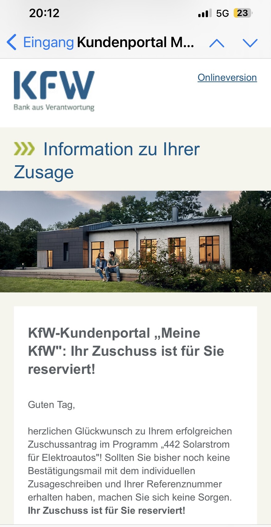 Das geht vielen so, nur Hopplas, den ganzen Tag, und heute kam dann trotzdem eine Mail. Laut KfW wird es auch noch etwa dauern, bis im Portal was zu sehen ist.