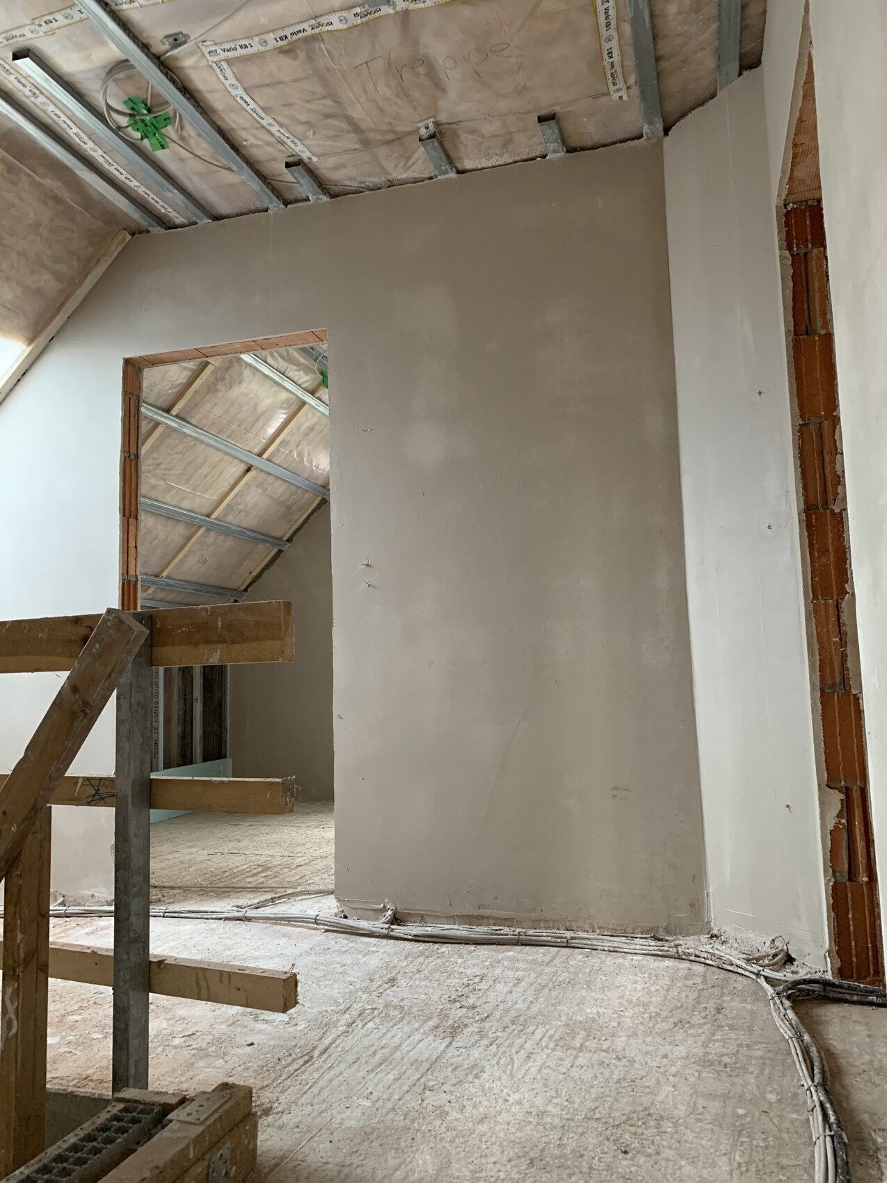 Yvonne, ja die Asymmetrie war ein Vorschlag vom Elektriker. Da genau/ziemlich mittig im Flur ein Metallprofil verläuft für den Gipskarton. Somit wäre ein Spot mehr links und der andere mehr rechts vom Profil gewesen, als beide in einer Linie aber eben nicht mittig.