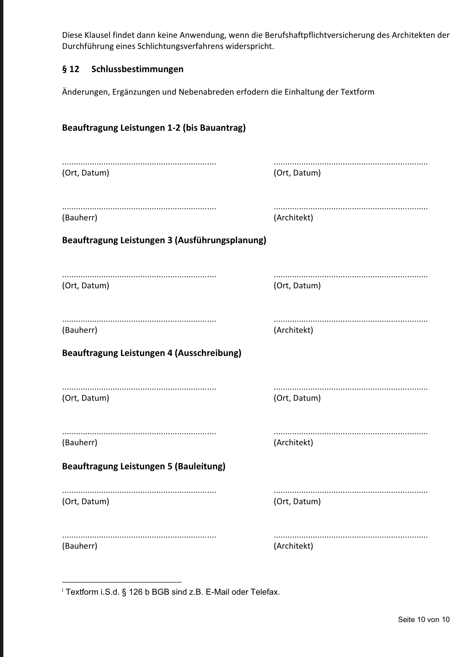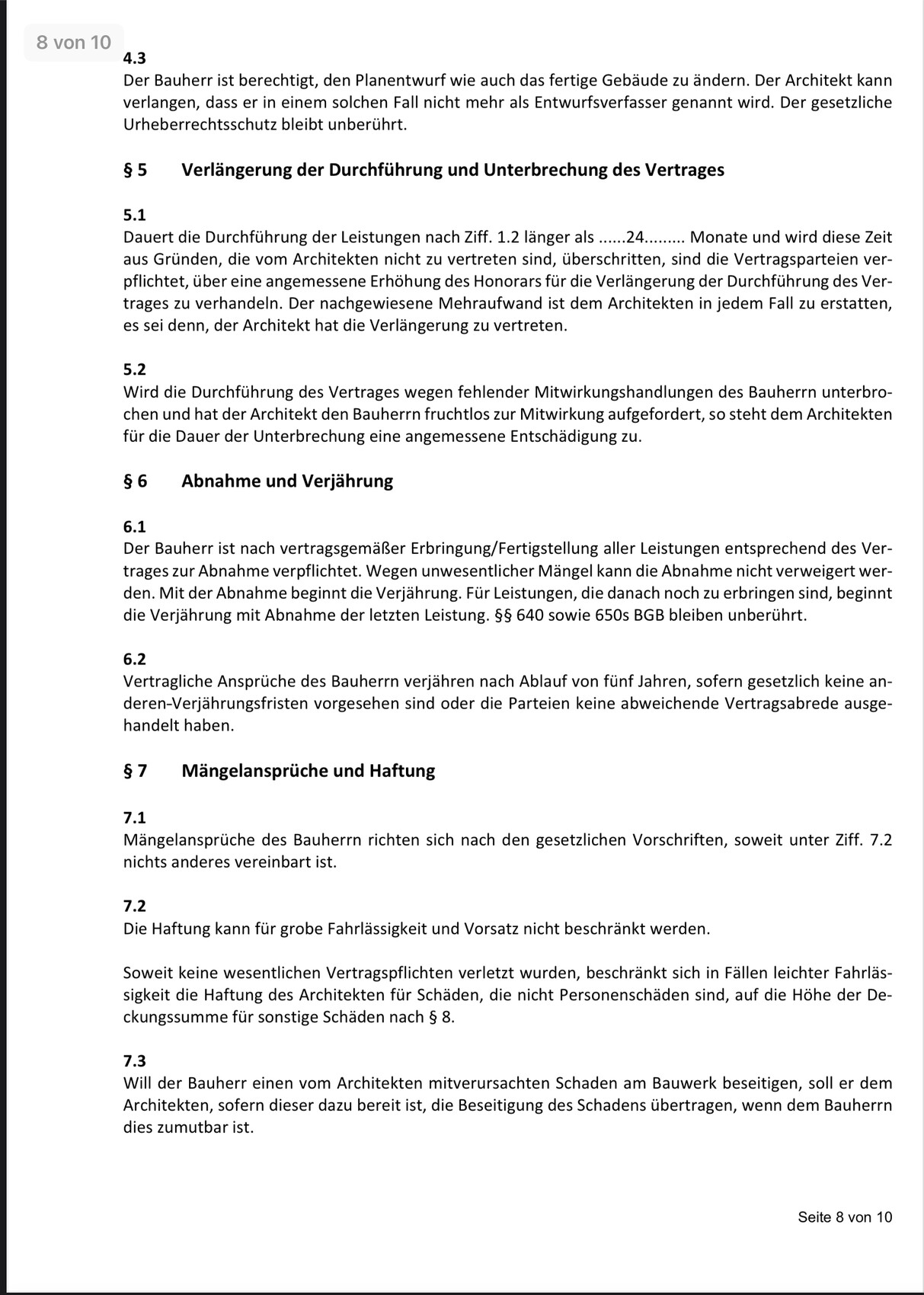 was sagt ihr?Ich sage: dann lernt den Kollegen kennen und nehmt in den Vertrag auf, daß die beiden den Vertrag in allen Phasen gemeinsam erfüllen. Ein Bauleiter, der den Entwerfer nur kennt, ist nicht gleichwertig mit einem Bauleiter, der selber aktiv am Entwurf beteiligt war.Mich wundert allerdings, daß er nur bis Leistungsphase 5 selber machen will (immerhin bis 5 und nicht nur bis 4, das ist schon sehr viel wert), denn sein Vertrag liest sich für mich in der Gesamtschau so, als wäre er auf einen Architekten zugeschnitten, der sich anschließend auch als GU betätigen will. Die Beschreibung der Wände gehört für mich in eine Bauleistungsbeschreibung, aber nicht in einen Architektenvertrag. Da würde für mich weder die Wandstärke noch die Steinsorte hineingehören - wohl aber gerne gesehen, ob die Planung neutral oder für Steinbau oder für Holzbau vorgenommen werden soll.