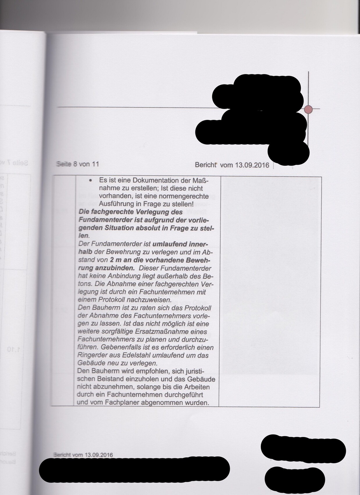 Dennoch stelle ich hiermit Auszüge aus dem Gutachten zum eigentlichen Thema Fundament zur Verfügung.