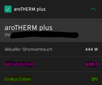 Gerade die beiden Werte hätte ich gerne zum aufzeichnen in HA, wie geschrieben die Ein/AUS-Zyklen habe ich