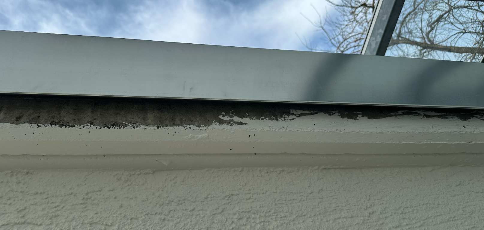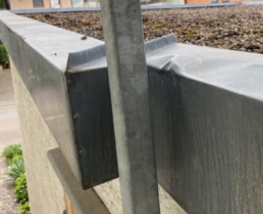 Nach Fertigstellung ist an mehreren Stellen die Betondecke unterhalb der neuen Attikaabdeckung sichtbar.