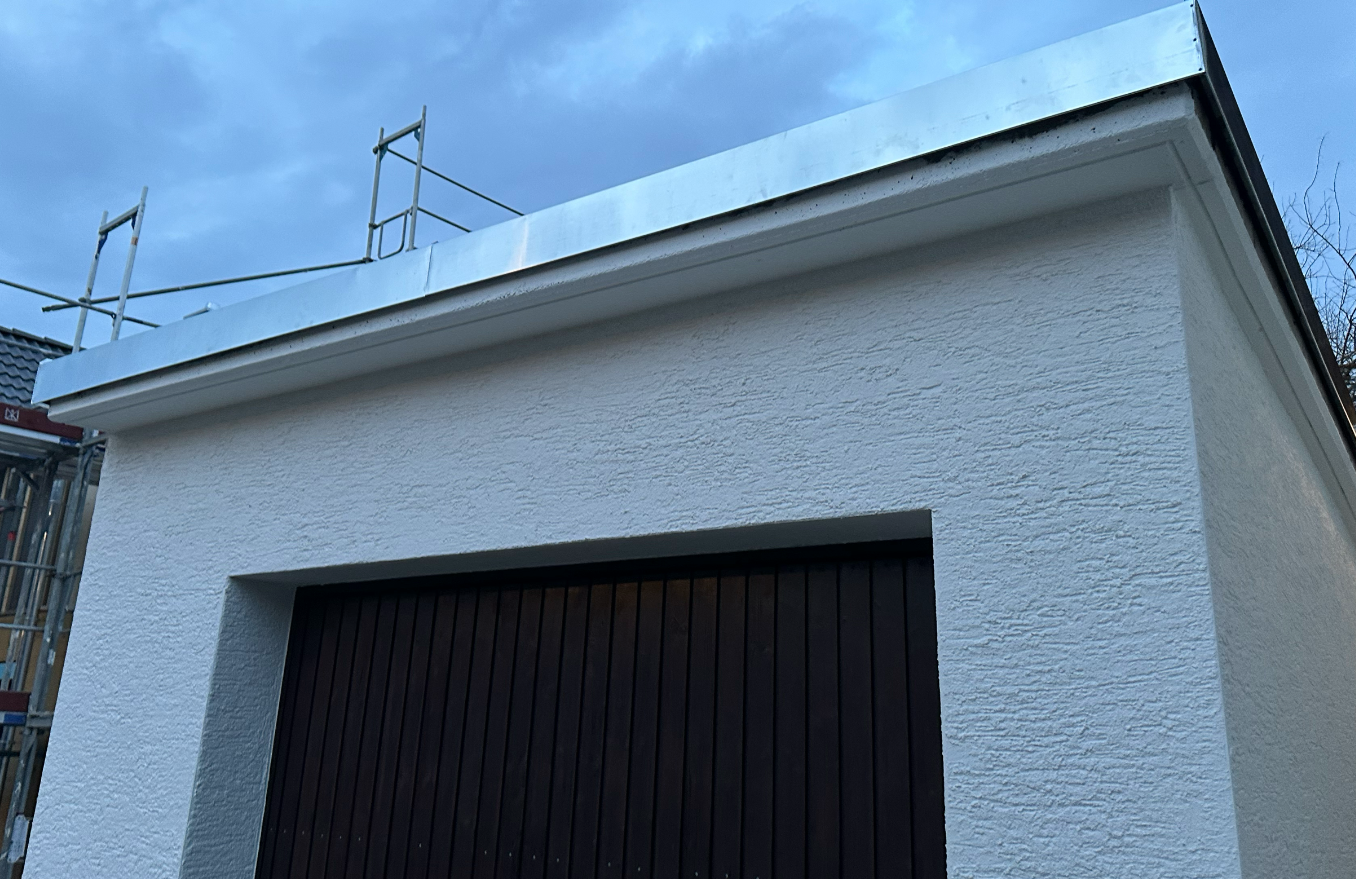bei einem Garagengebäude wurde im Zuge einer Flachdachsanierung die Attikaabdeckung erneuert.
