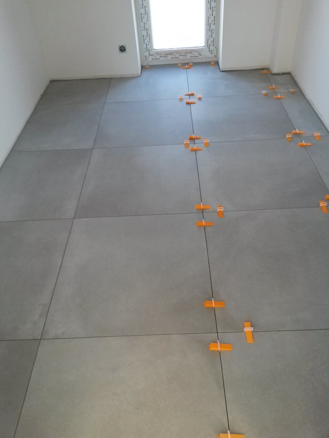 Unser Fliesenleger arbeitet mit einem Nivelier-Keil-System und das klappt super!