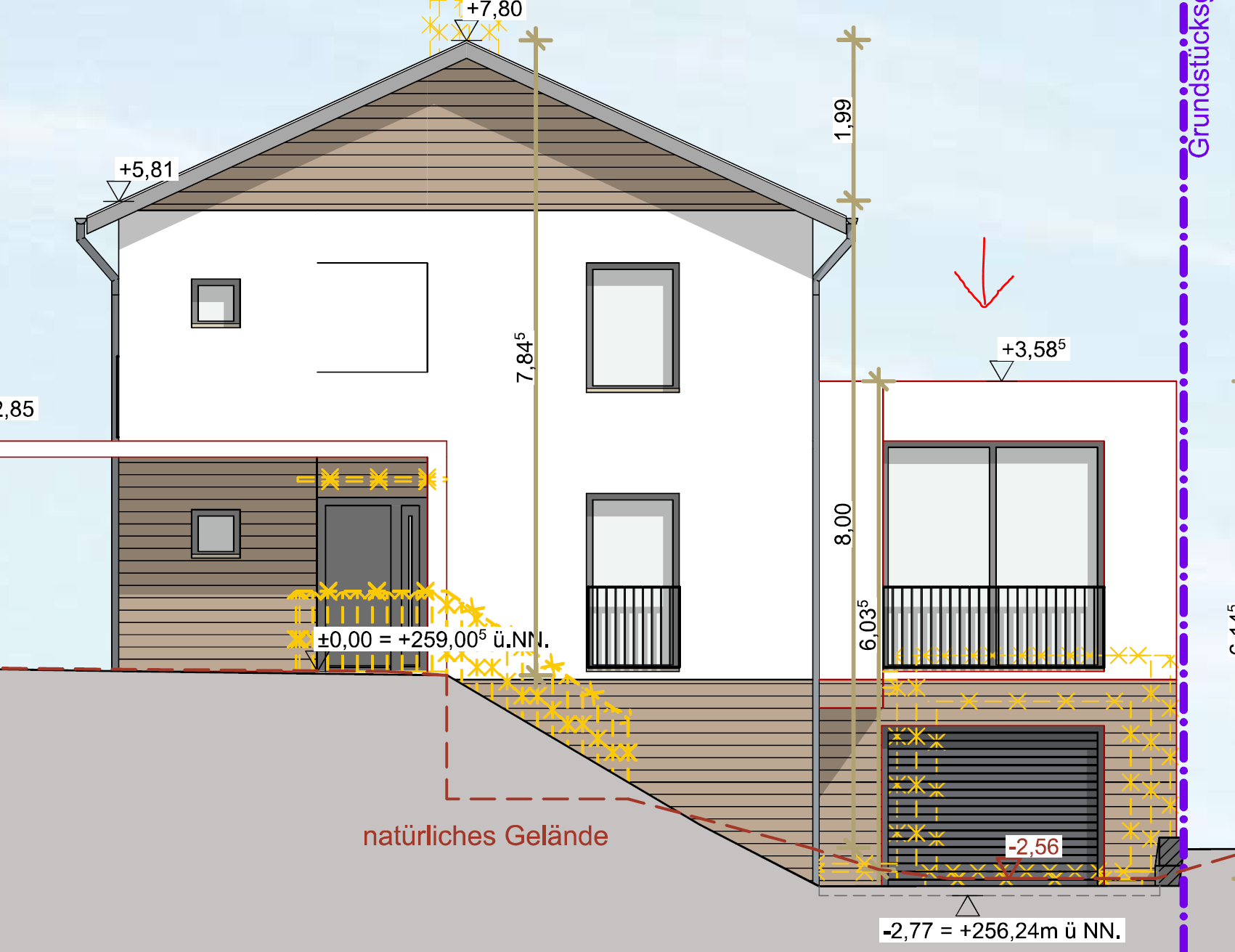 Das Fenster Richtung Terrasse (Ost) ist bereits fest und es geht vor allem um das große Süd-Fenster und das "kleinere" Nord-Fenster, deren insgesammte Größe und Lage aber auch bereits fest sind.