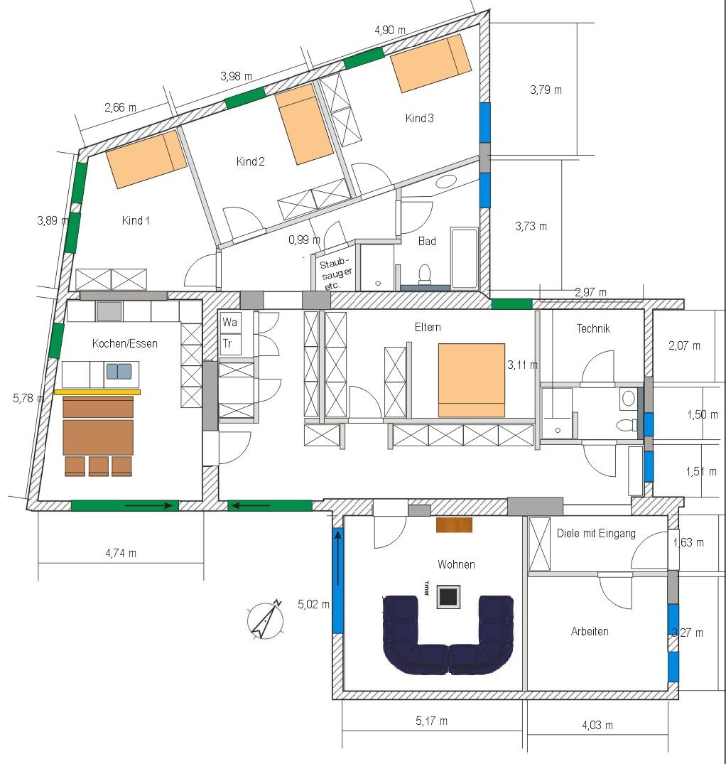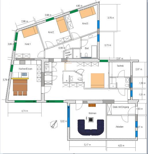 - grün = neue Fenster / Terrassentüren
