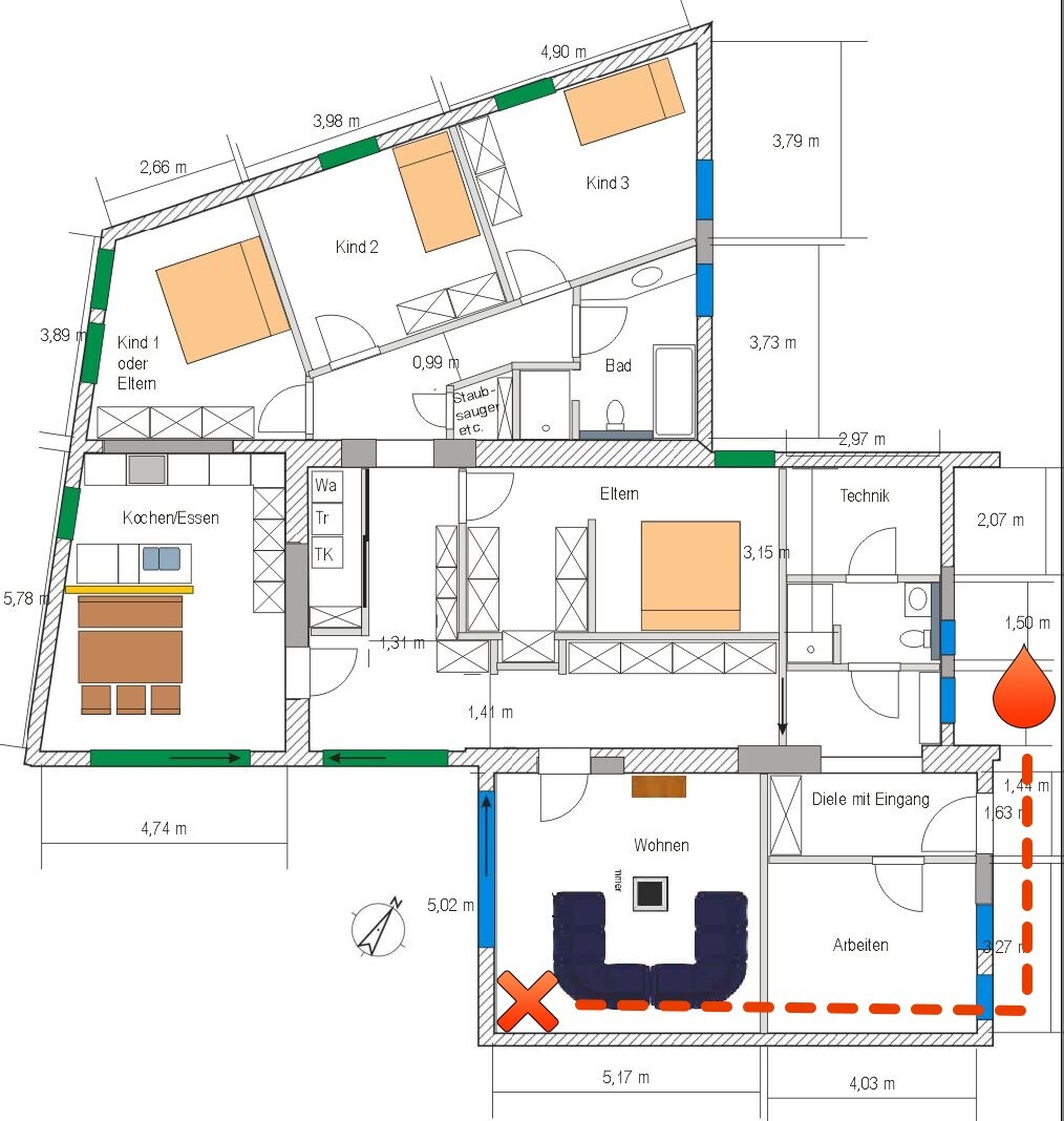 Sinnvoll ist es auch, den Plan mal zu kennzeichnen, wo das Abwasser das Gebäude Verlässt und wo in der Etage, die ihr ausbauen wollt, schon überall Wasser/Abwasserpositionen sind. Irgendetwas im Text hattest du mal geschrieben, aber ein Bild sagt mehr als tausend Worte 😉