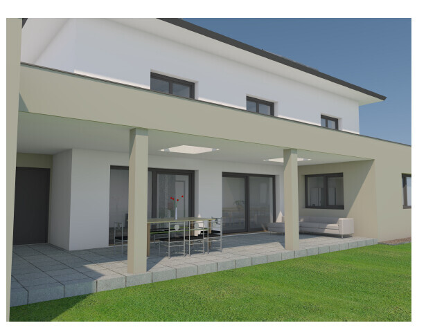 Was ich sehe: das WZ/Ess wird dunkel, da durch die überdachte Terrasse kein direktes Licht den Raum erhellt. Grundsätzlich gefällt mir die Idee, aber eben nur, wenn auf einer Verlängerung oder übers Eck ein freier Fensterausgleich geschaffen wird. Bei Dir hier ist das nicht der Fall.