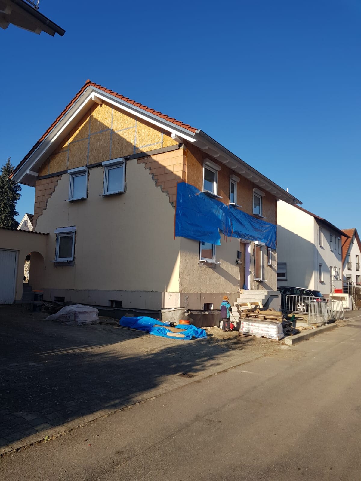 Tolentino16.02.22 15:41Kapier ich nicht. Die Dämmplatten kommen doch jetzt außen drauf und darauf dann der diffusionsoffene Putz. Ist doch normal so? Bin jetzt nicht der Holzbauexperte, aber ich kenne das so.