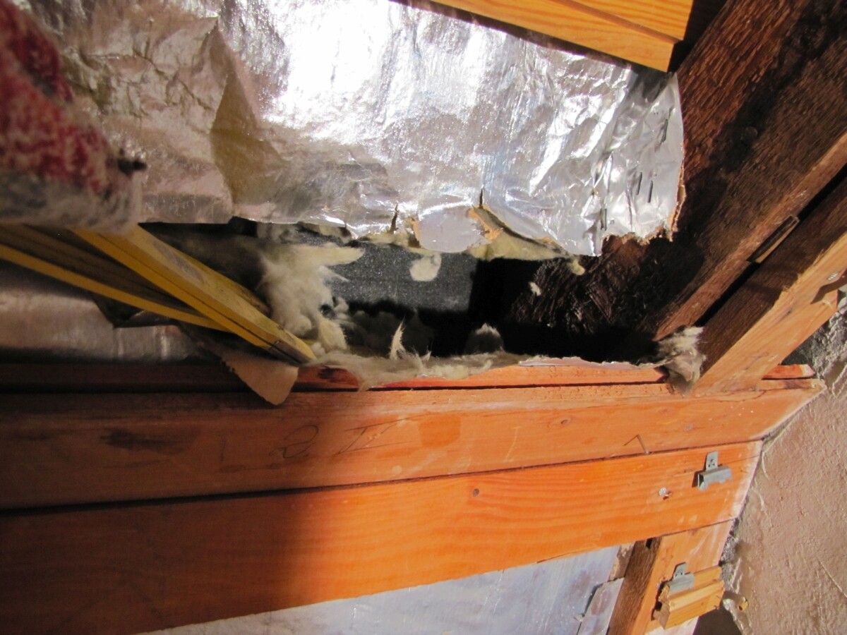 a) schon zwischen Dampfbremse und der alten alukaschierten Dämmung hängenbleibt