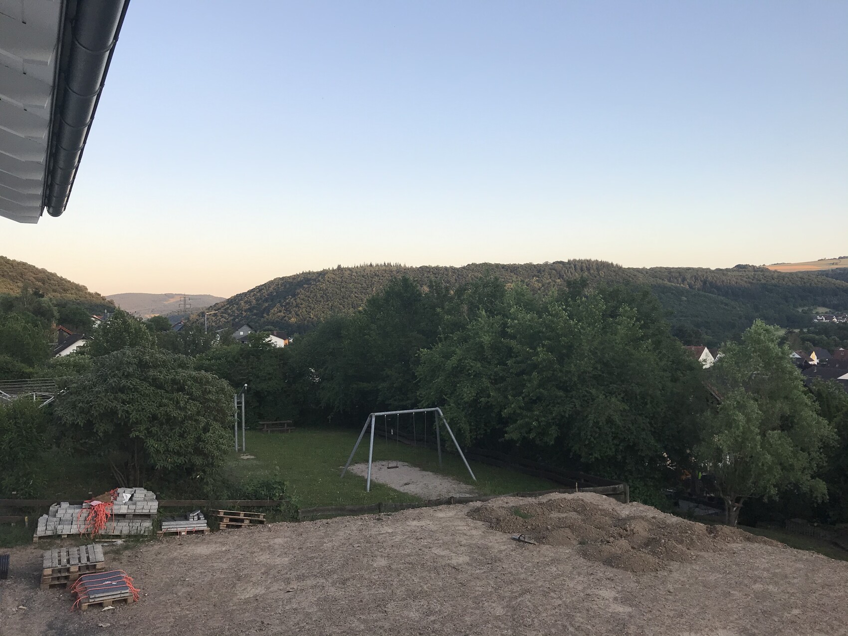 Es geht jetzt darum, oben über die Kuppe. Wie machen wir das am besten, einfach grün? Eine Mauer hin? Zaun? Blöd natürlich auch, wenn dann mal der Ball von Junior immer wieder runter rollt. Was würdet ihr machen?