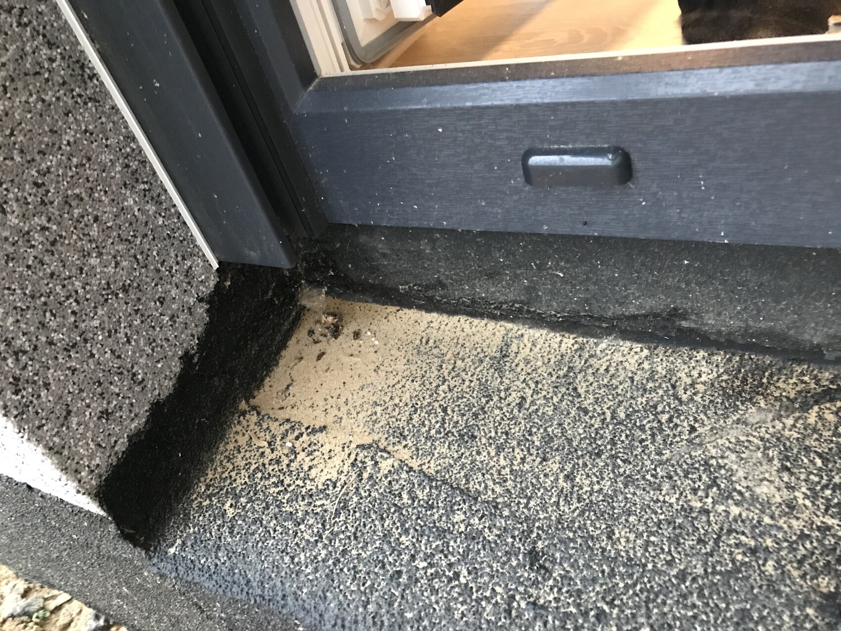 Dort sollte eigentlich ein Fensterbrett hin. Wir haben bei allen anderen (nichtbodentiefen) Fenstern Aluminium Fensterbänke.