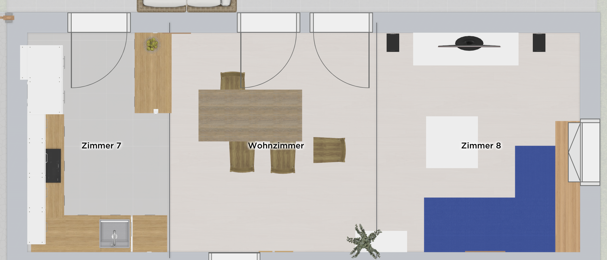 Wobei ich dann beide Türen mit Jalousien setzen müsste, sonst sieht das doof aus. Also entweder nur Küchentür Außenjalousien oder auch die im 'Wohnzimmer' betitelten abschnitt. Oder habt ihr noch bessere Konzepte?