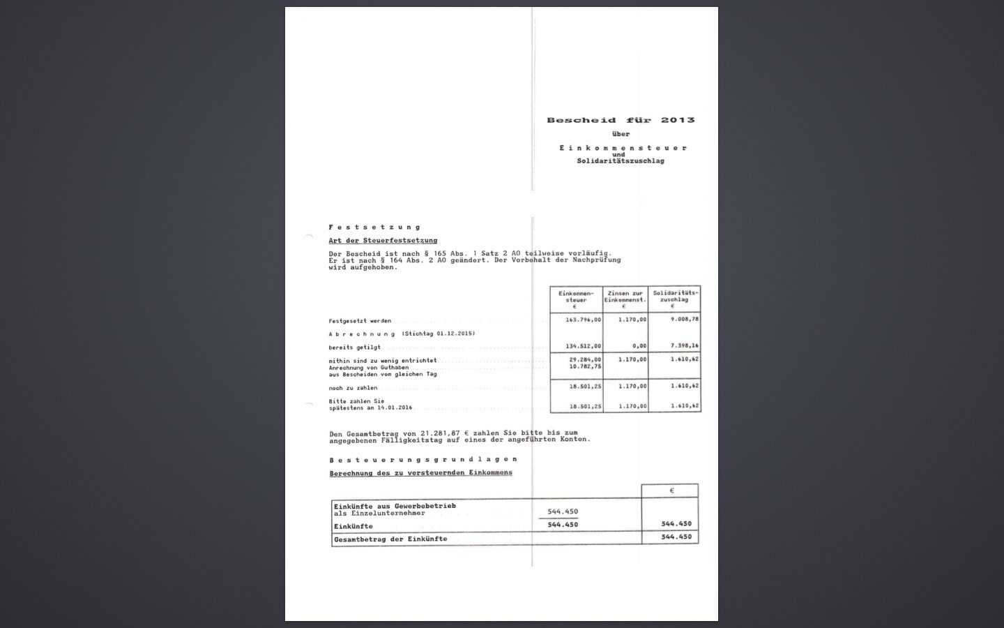 Gegen den Steuerbescheid, nach dem er hätte auch zig Mio Steuern zahlen müssen hatte er dann einfach einen Widerruf gemacht, nach dem Motto ich hab mich um 3 Stellen vertan *lol*